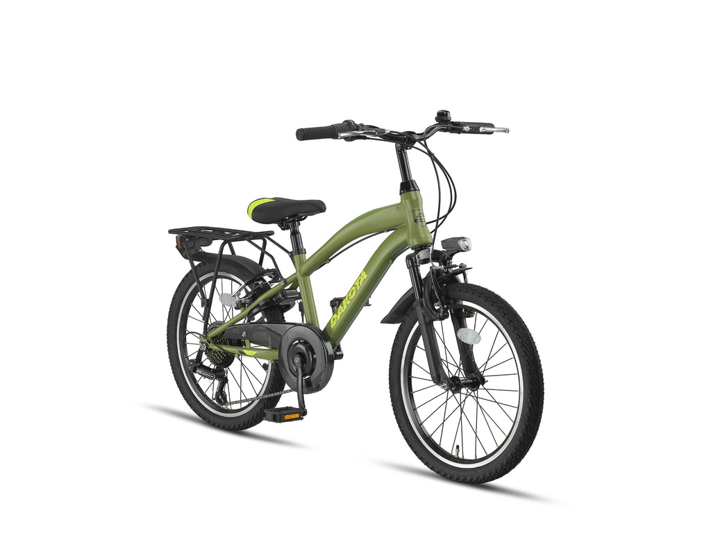 20 Zoll Kinderfahrrad, Altec Dakota mit Gepäckträger, 7 Gang Shimano, MTB Jungen, army green