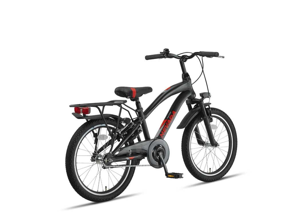 20 Zoll Kinderfahrrad, Altec Nevada mit Gepäckträger, MTB, Rücktrittbremse black red