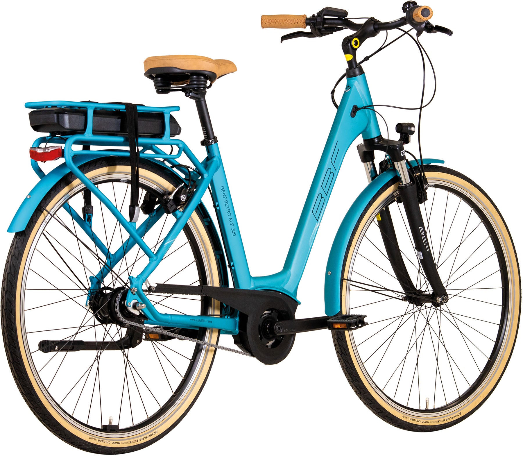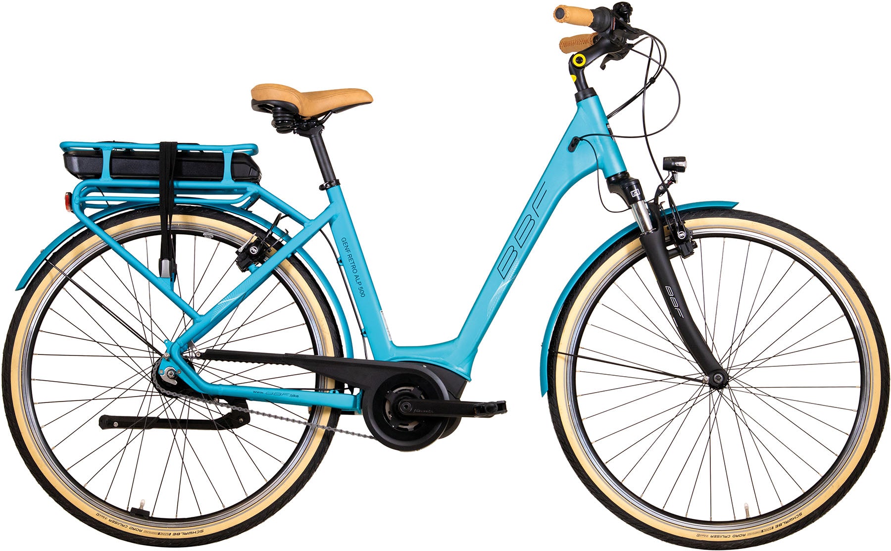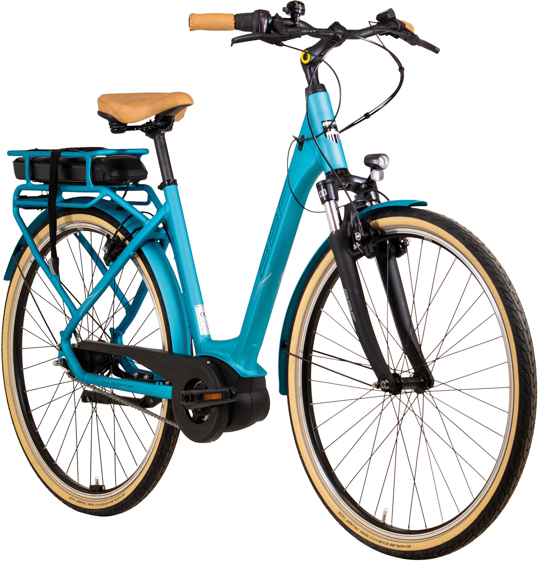 XL Pedelec bis 140 kg BBF GENF Retro ALP 500 Wh BOSCH Active Line Plus Damen 7-Gang türkis matt Rücktritt